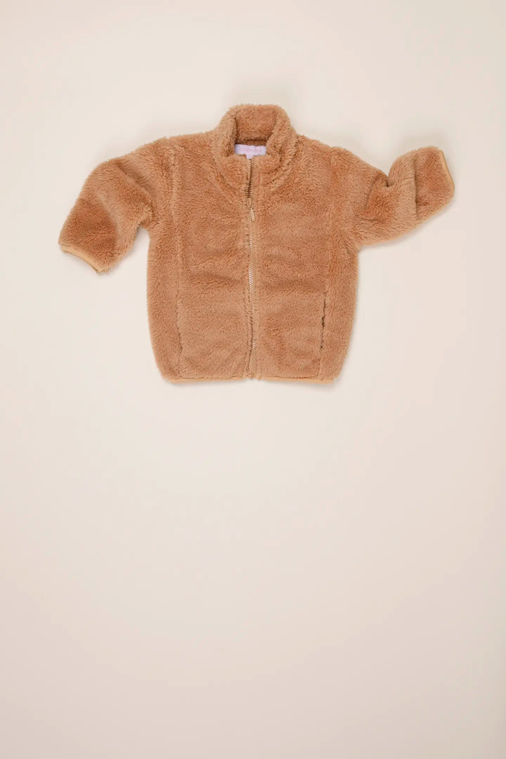 Giacca neonato/a in eco-pelliccia marrone con apertura zip sul davanti
