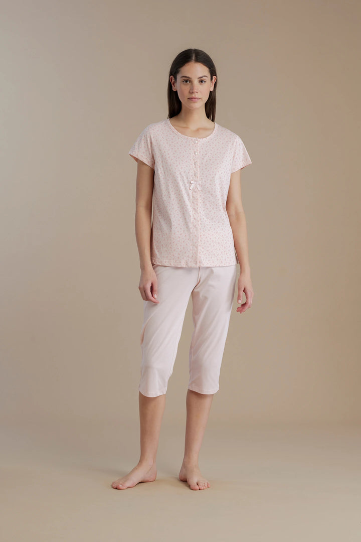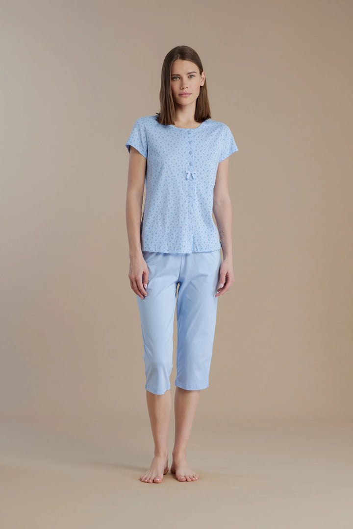 Pigiama donna mezza manica e pinocchietto con apertura frontale
