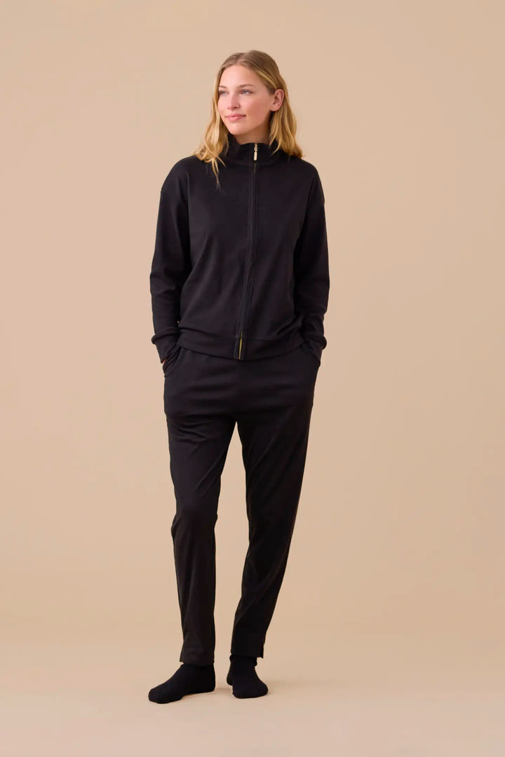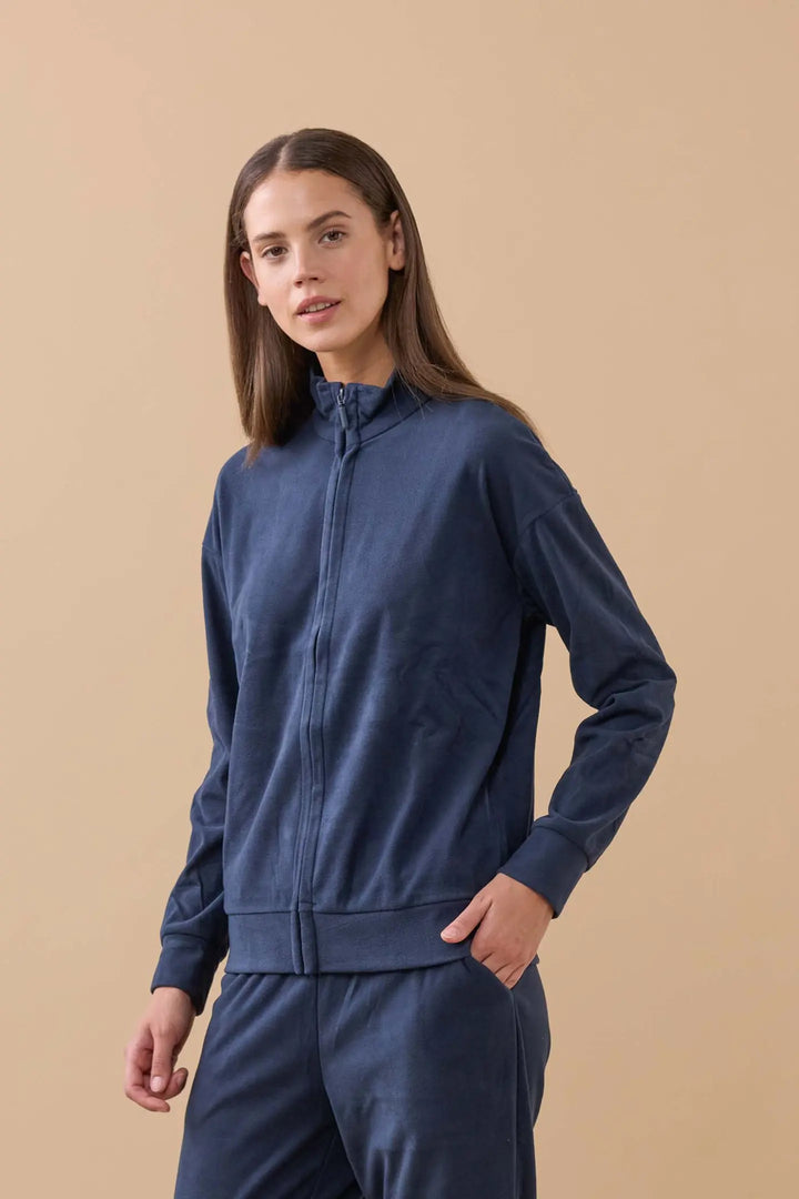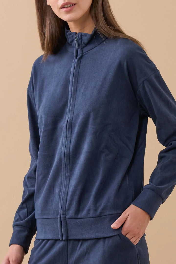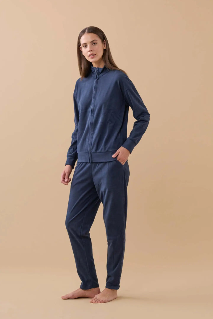 Completo invernale donna in micropile con top con zip e pantaloni dritti
