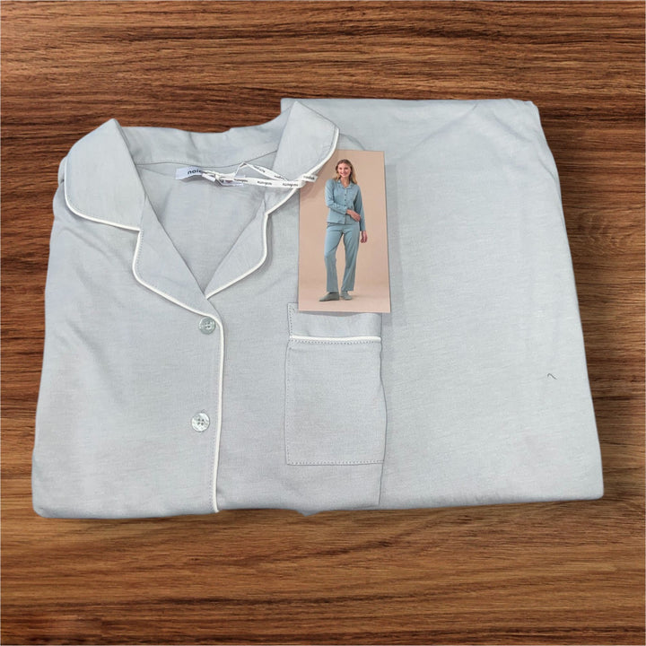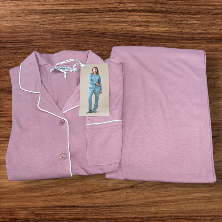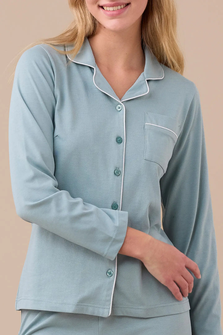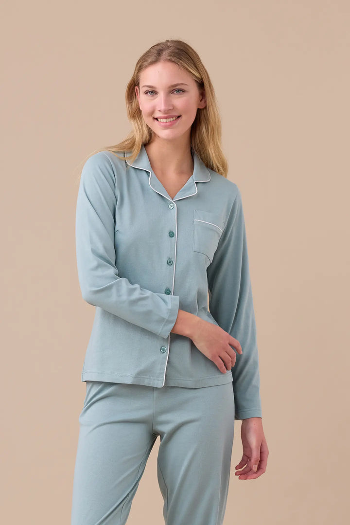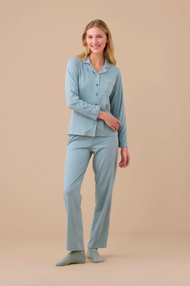 Pigiama donna in jersey invernale, top tina unita taglio uomo, pantaloni tinta unita.