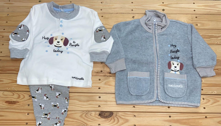 Pigiama 3 pezzi caldo cotone con giacca in coral coordinato