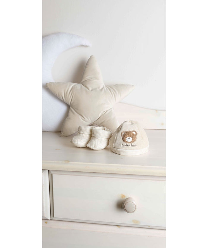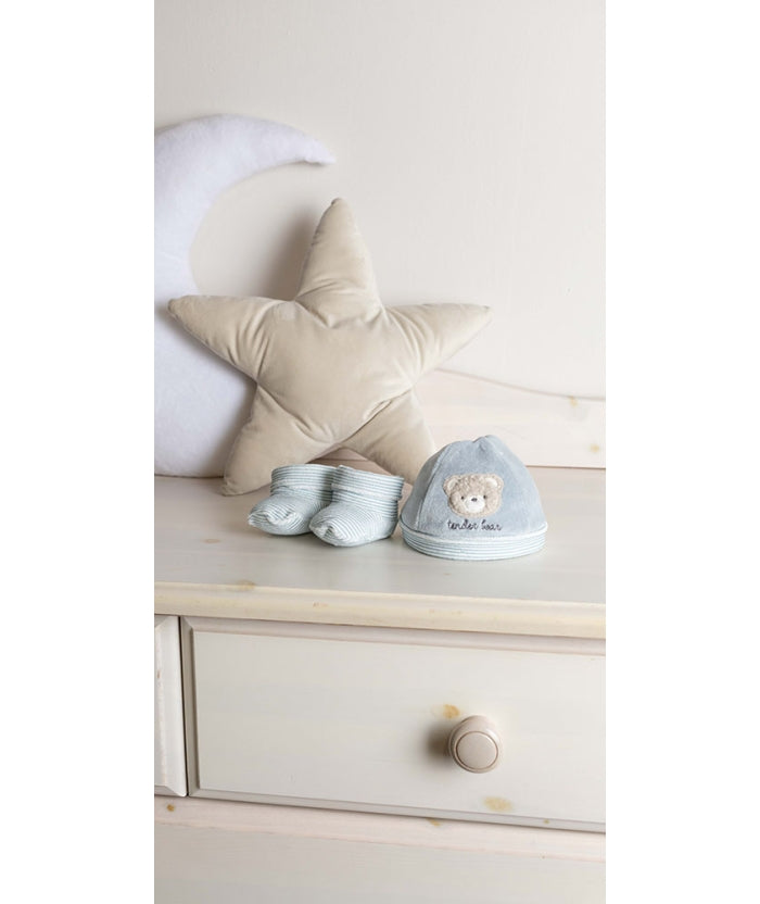 Gary Cappellino e Scarpette Neonatoin ciniglia 80% cotone e 20% poliammide fantasia con ricamo