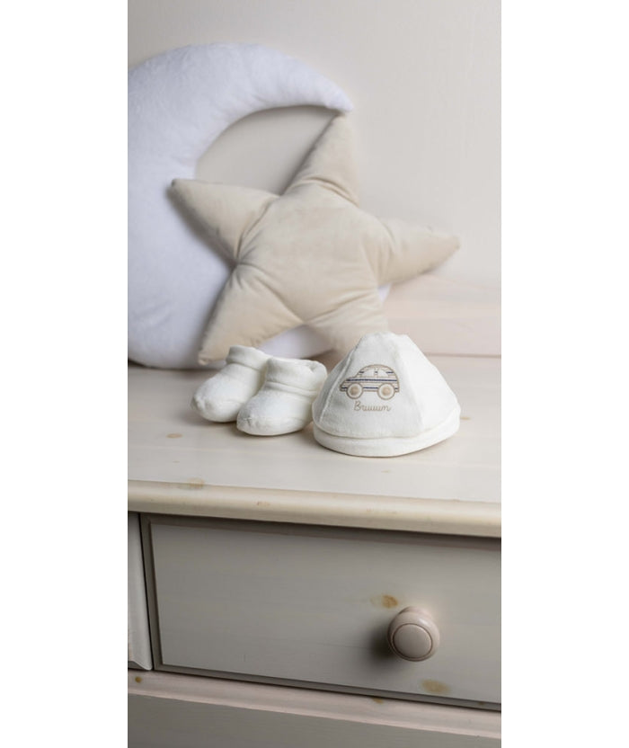 Gary Cappellino e Scarpette Neonatoin ciniglia 80% cotone e 20% poliammide tinta unita con stampa